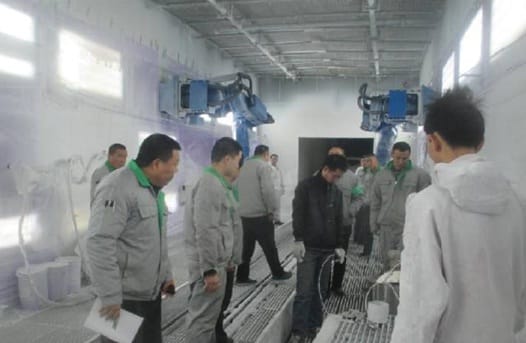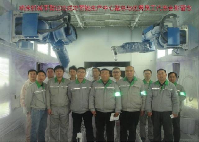 喷涂机械手臂的安装经历了一个月的时间,11月份、12月份正值公司的销售旺季,公司各个车间都处在紧张而忙碌的生产氛围中,喷涂机械手的安装无疑给生产增加了更大的难度,但是这并没有难倒勤劳、勇敢的丽驰涂装家人,为了不影响车间正常生产,涂装车间主任刘洪强组织设备动力部、安装厂家共同制定夜间施工方案,并安排车间各班组长轮流值班,盯守夜间施工操作,确保施工安全,经过一个多月加班加点的工作,较终圆满完成了这个对富路集团、对丽驰发展十分重要的壮举。 喷涂机械手臂腕部采用柔性手腕,既可向各个方向弯曲,又可转动,其动作类似人的手腕,避免了人工喷涂车身结合部位时,枪距不稳造成的色差问题,使其漆面均匀一致。喷漆机械手臂一般采用液压驱动,具有动作速度快、防爆性能好等特点。29日,机械手试喷首辆车时,公司领导以及各车间主任都到达生产现场一起见证这一激动人心的时刻,经过涂装车间工作人员调试,涂装车间机械喷涂手臂试喷辆车成功且喷涂效果达到了公司质量要求。