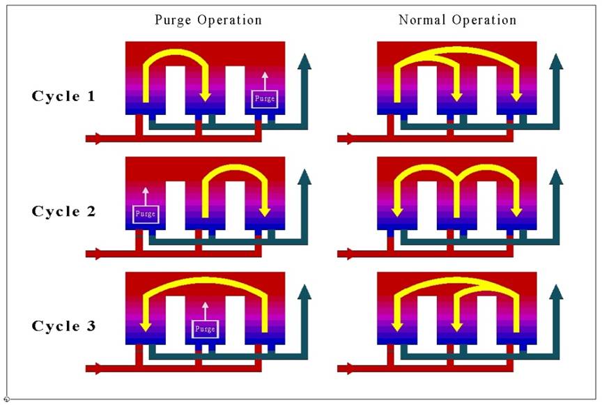 B. Core Advantages of Three-Chamber DesignCompared with two-chamber RTO, the three-chamber structure solves the problem of exhaust gas leakage during switching by adding a "purging chamber", with the main advantages as follows: