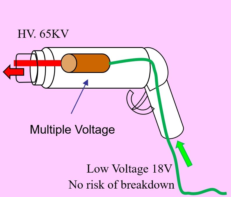 Cable between spray gun and controller | Low voltage 18V AC supply | 70KV HV cable |