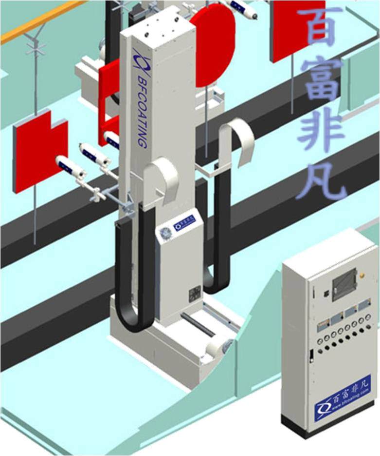 依工件形狀,平噴嘴、金屬噴嘴(特殊配備) ,可遠方遙控調整較佳的噴幅及漆霧飛行速度。