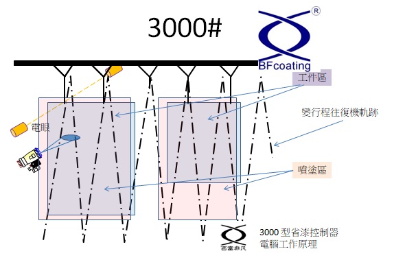 4.配合往復機噴塗,光眼有感应到的位置,才做一維的控制噴塗。第二維高度採用預先設定噴塗區域,節約塗料。